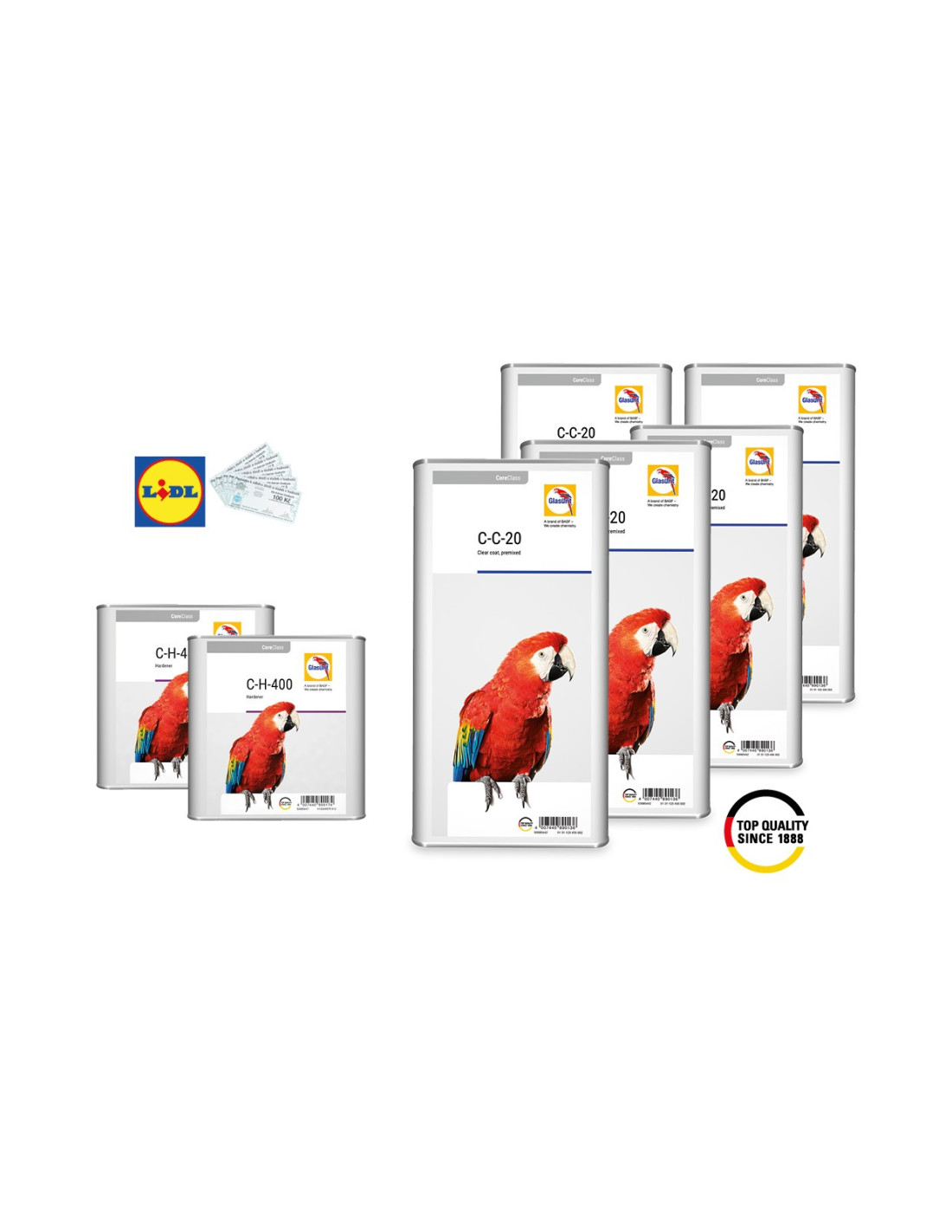 AKCE GLASURIT: C-C-20 bezbarvý lak (5 x 4 L) + C-H-400 tužidlo (2 x 2,5 L) + dárek