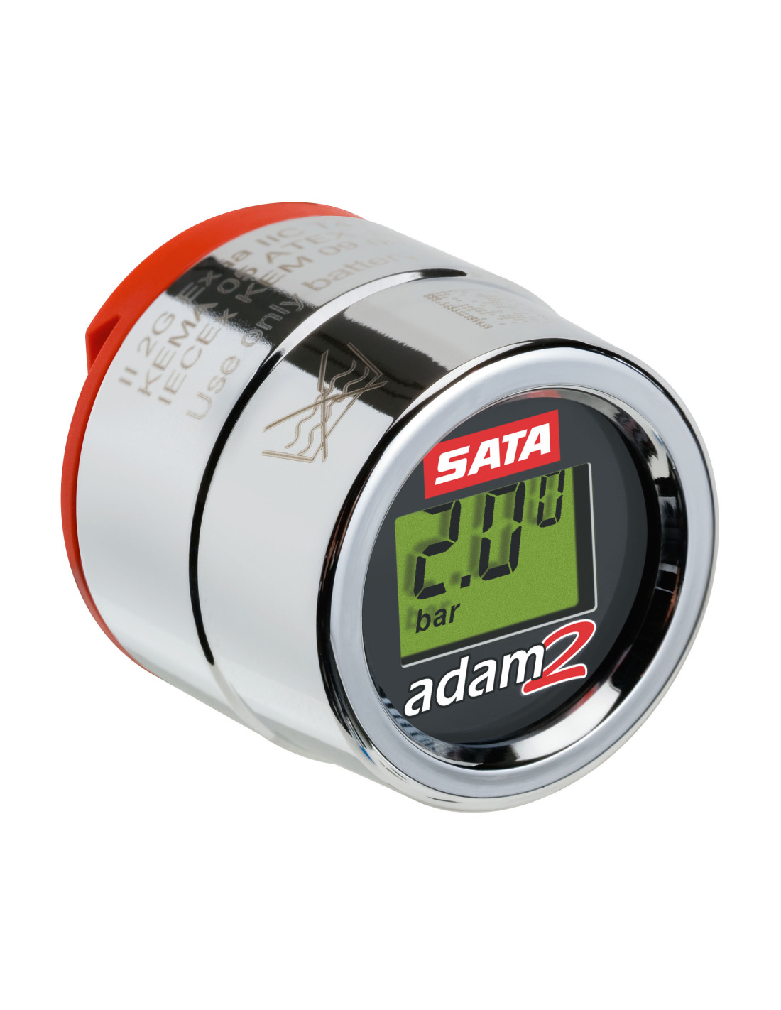 SATA adam 2 display "bar" ukazuje Vstupní tlak lakovací pistole s přesností +/- 0,05 bar. Tlak se dá přesně nastavit pomocí velkých regulačních křídélek. Všechny lakovací pistole SATA lze dodatečně vybavit s SATA adam 2. Díky tomu mají lakýrníci tlak vždy pod kontrolou, což výrazně přispívá k zajištění přesnosti barevného odstínu a výsledkům lakování s vysokou kvalitou. Nákladné dodatečné práce kvůli nesprávnému nastavení tlaku jsou již minulostí. Pevný displej umožňuje vždy pohodlné odečtení tlaku. Digitální vzduchový mikrometr k dodatečnému vybavení lakovacích pistolí SATA – i pro SATAminijet. Přesné nastavení a zobrazení vstupního tlaku. Pro maximální přesnost barevného odstínu. Nová konstrukce umožňuje použití displeje na několika lakovacích pistolích. Prodloužená trvanlivost baterií, výměna baterií lakýrníkem. Přemění standardní lakovací pistoli na pistoli s digitálním měřením tlaku.